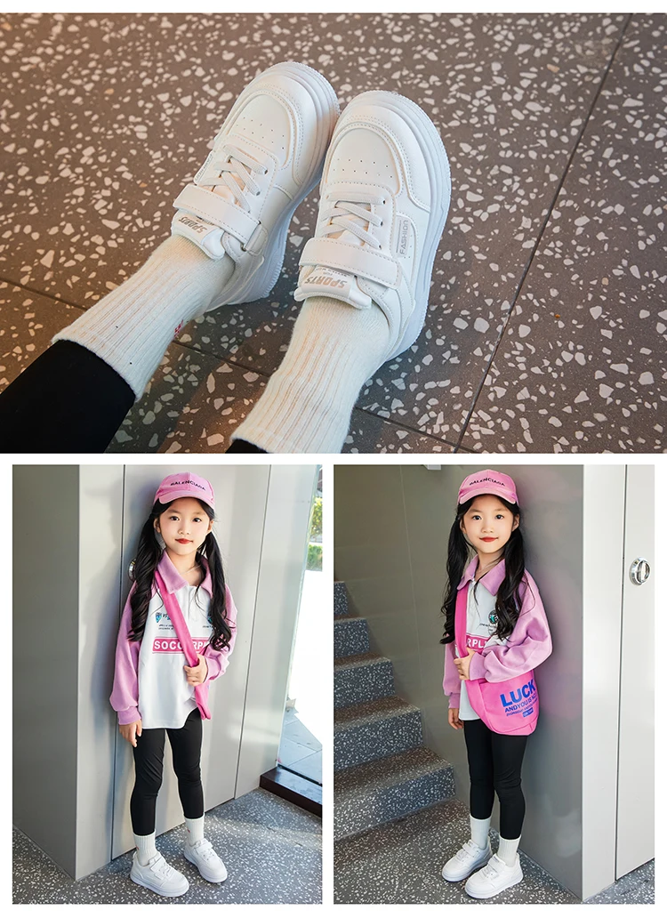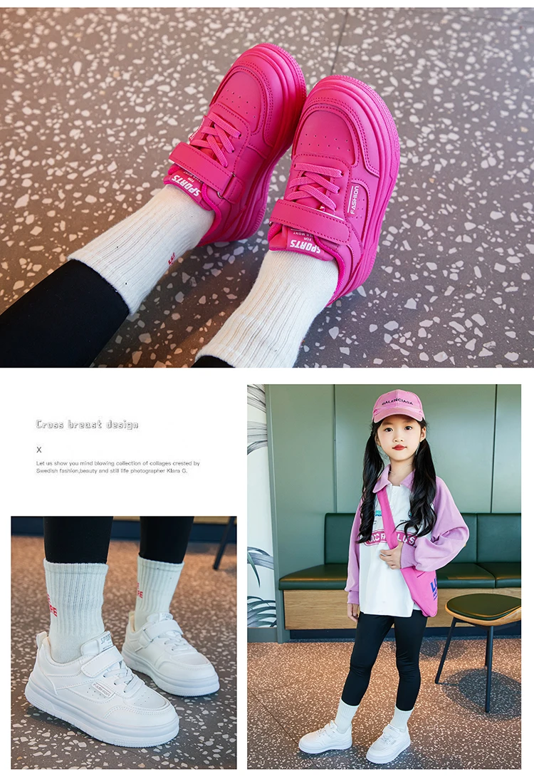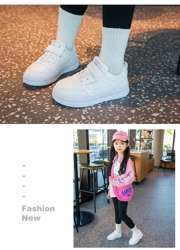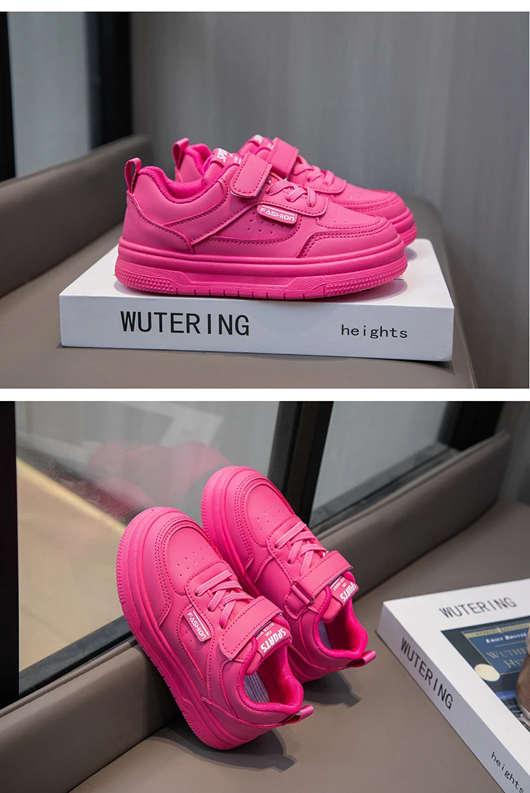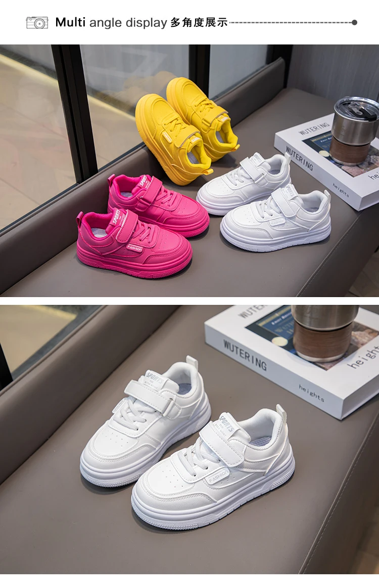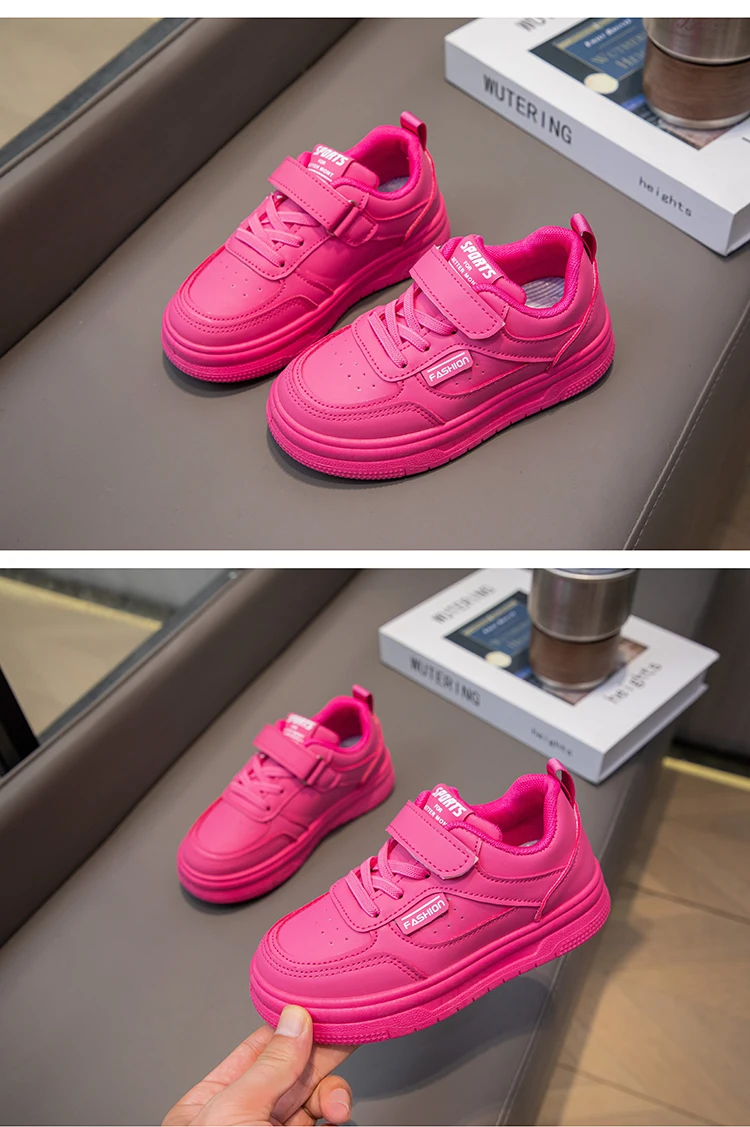 Children White Shoes Leather Pink Cute Girls Sneakers Anti Slip Lightweight Kids Casual Board Shoes Soft Sole Boys Running Shoes