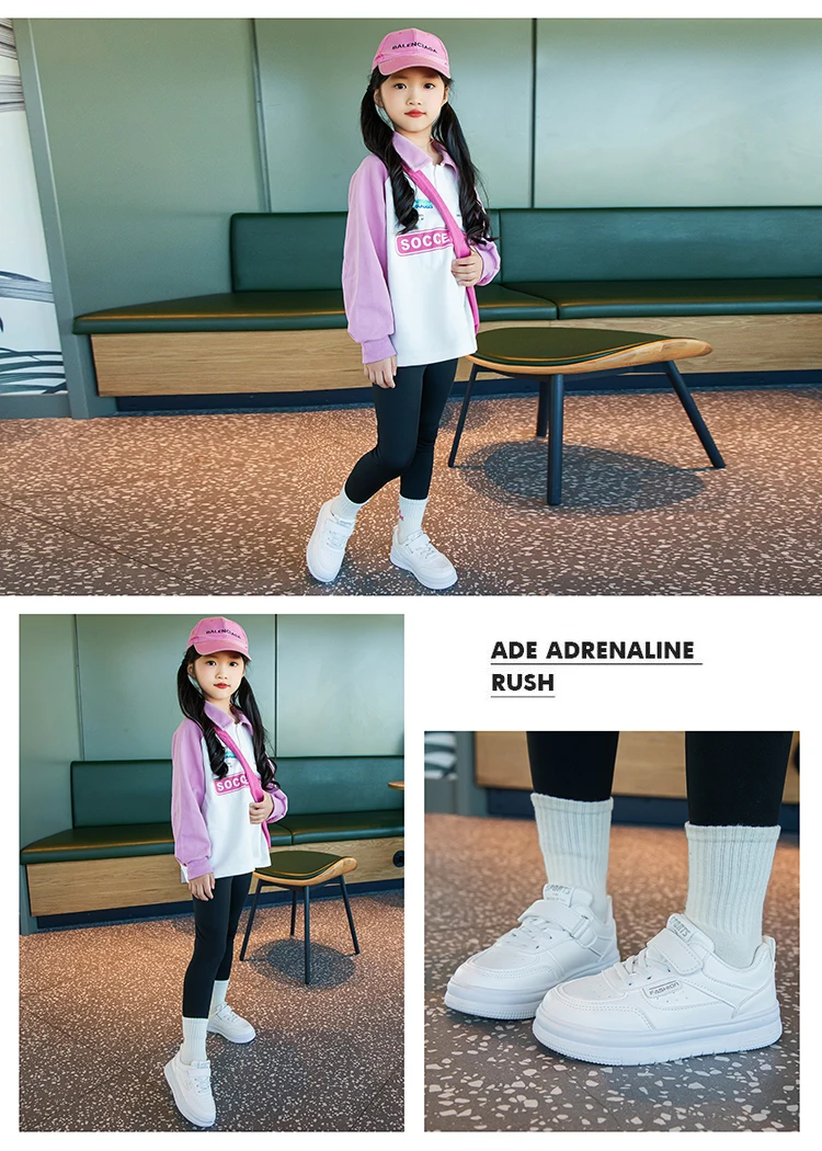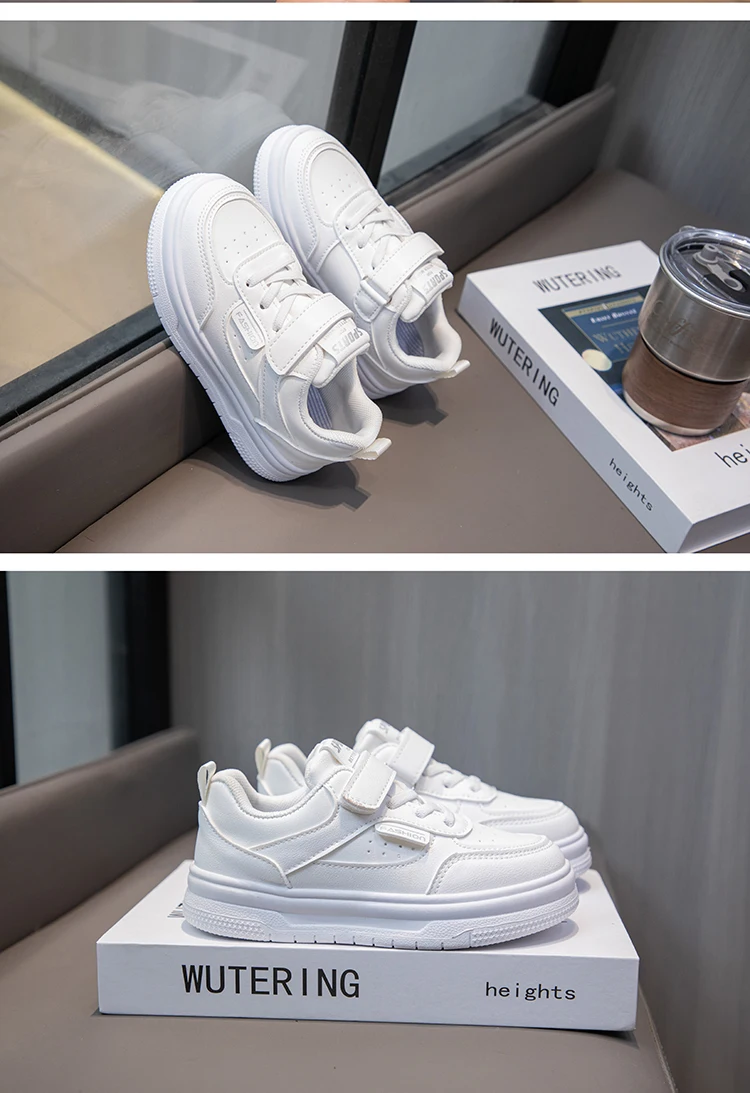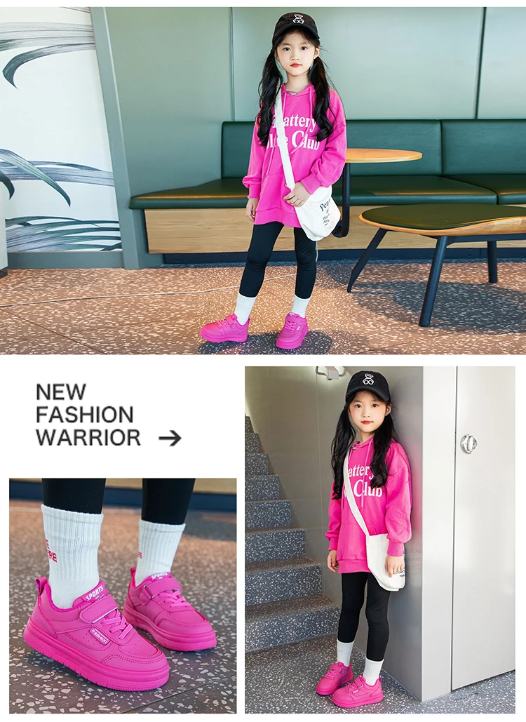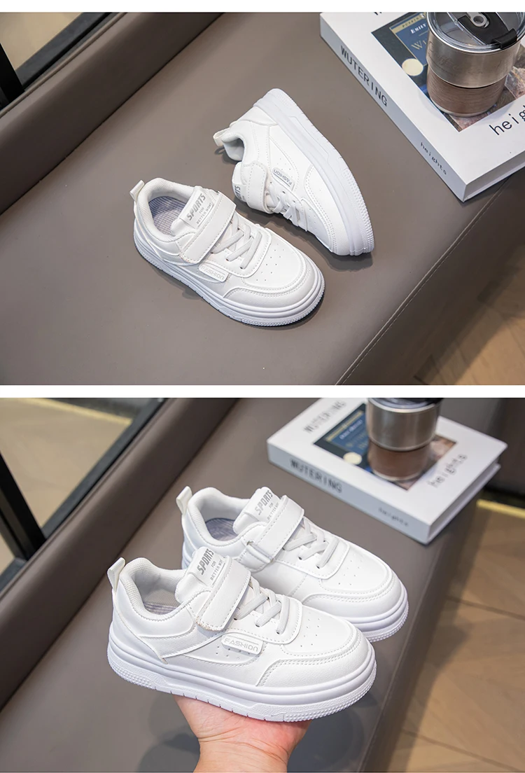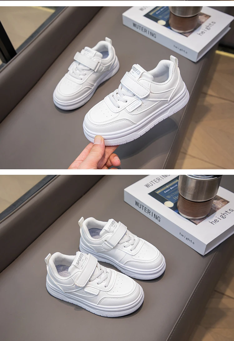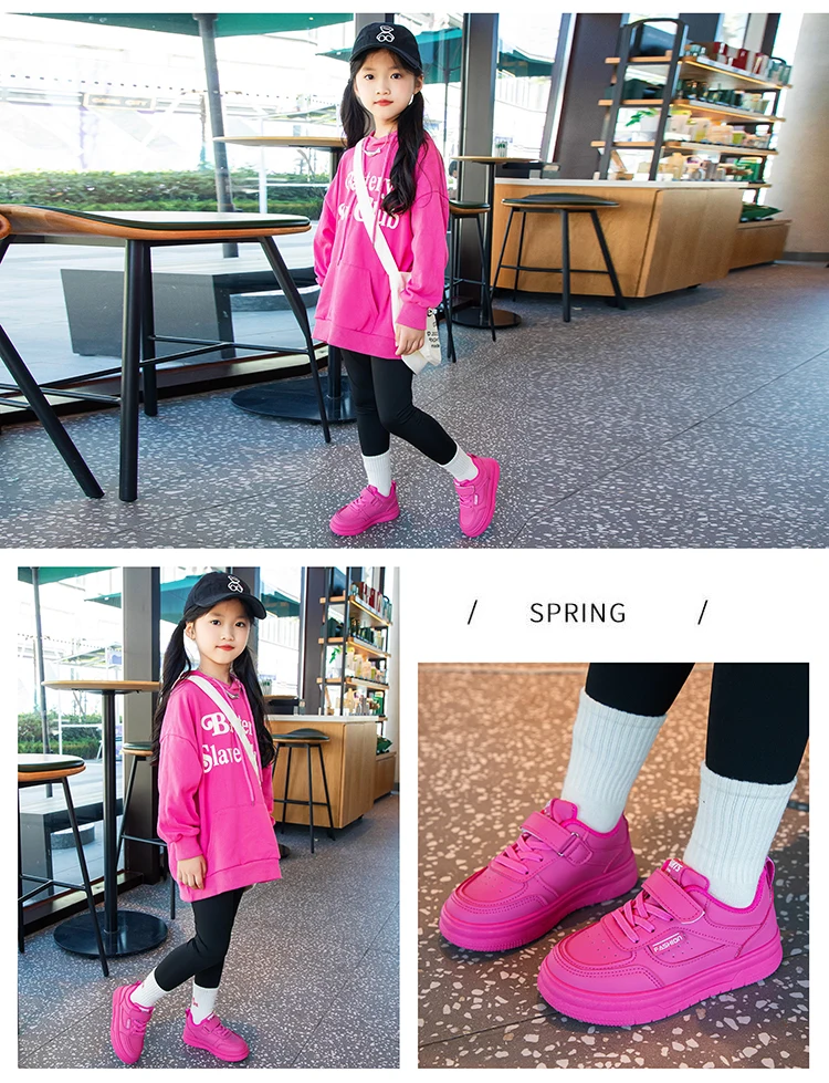 Children White Shoes Leather Pink Cute Girls Sneakers Anti Slip Lightweight Kids Casual Board Shoes Soft Sole Boys Running Shoes