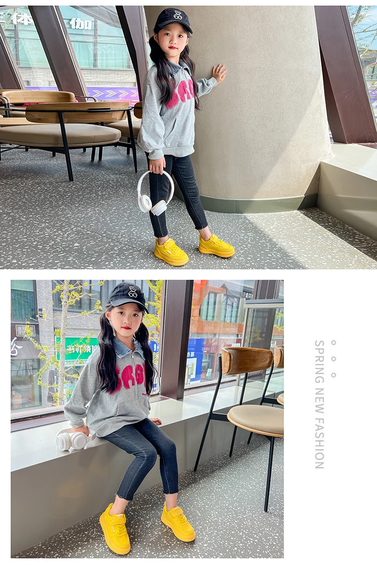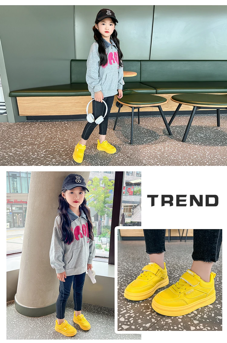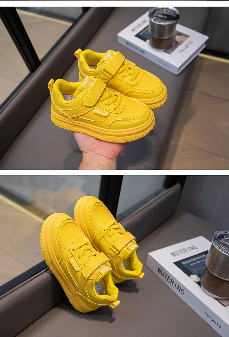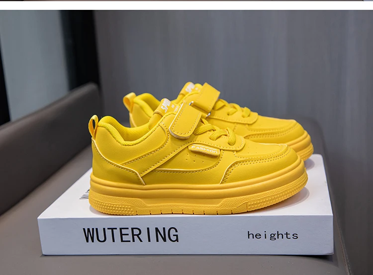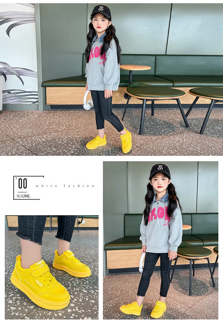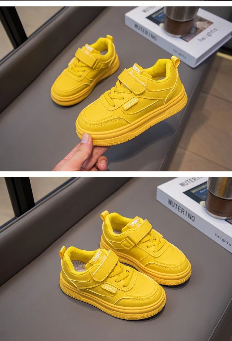 Children White Shoes Leather Pink Cute Girls Sneakers Anti Slip Lightweight Kids Casual Board Shoes Soft Sole Boys Running Shoes