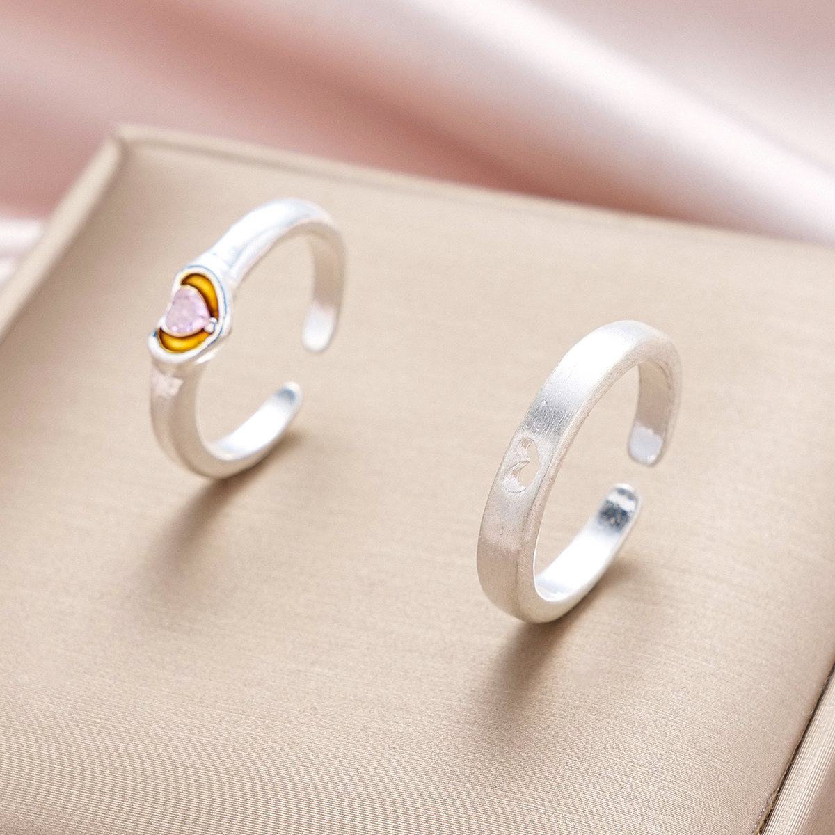 New Style Individualized Cool Style Pink Diamond Hollow Heart Opening Adjustable Couple Friend Plain Ring Set