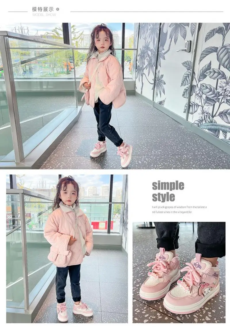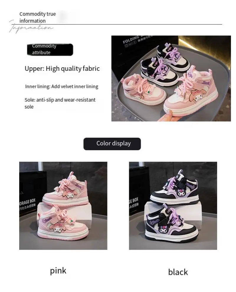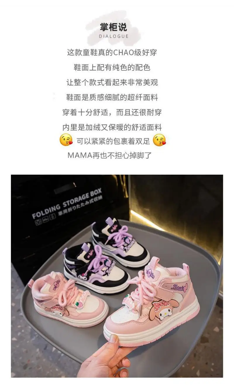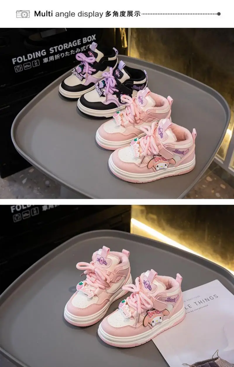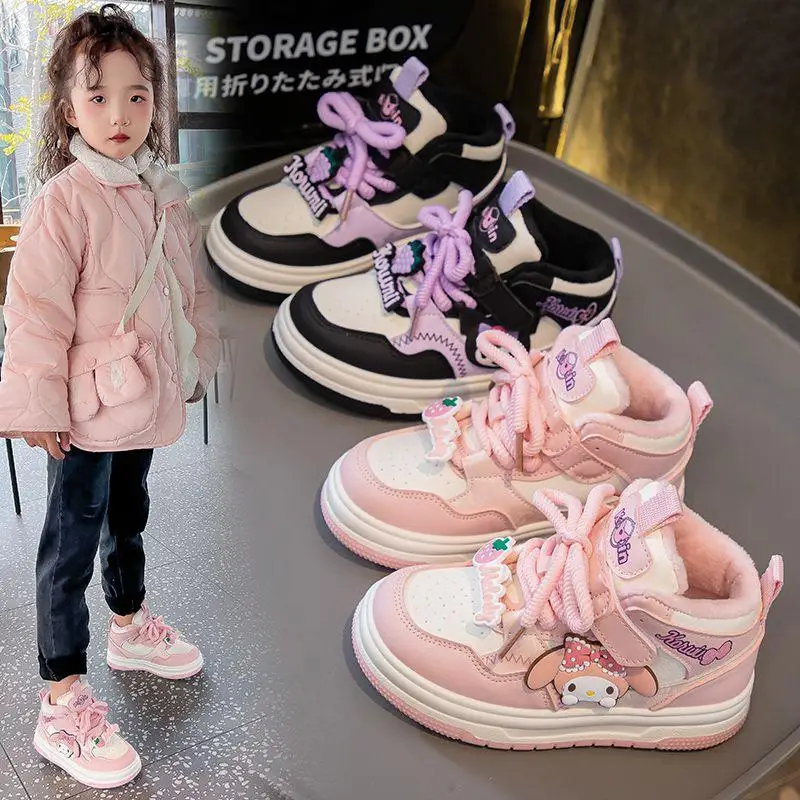Sanrio Kuromi Girls Hot Selling Sneakers Anti-Slip Casual Shoes My Melody New Style Anime Sports Shoes High Top Kids Snow Boots